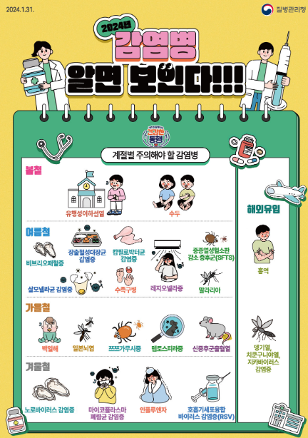 계절별로 발생하는 다양한 감염병으로 인해 우리의 삶의 질이 크게 달라질 수 있습니다. 따라서 우리는 계절에 따라 어떤 감염병이 주의해야 할지를 알고 그에 따른 예방과 대처 방안을 학습하고 시행해야합니다. 각 계절에 맞는 적절한 예방 수칙을 준수하고, 주의해야 할 질병에 대한 올바른 정보를 파악하는것이 중요합니다. 올바른 정보의 습득을 바탕으로 일상생활에서 예방수칙을 실천해간다면 여러 전염병으로부터 나와 내 가족을 지켜낼 수 있을것입니다.