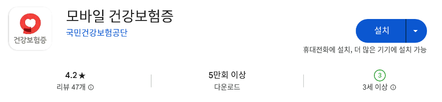 1) 앱스토어에서 모바일 건강보험증을 검색하여 '모바일 건강보험증' 어플리케이션 다운받기